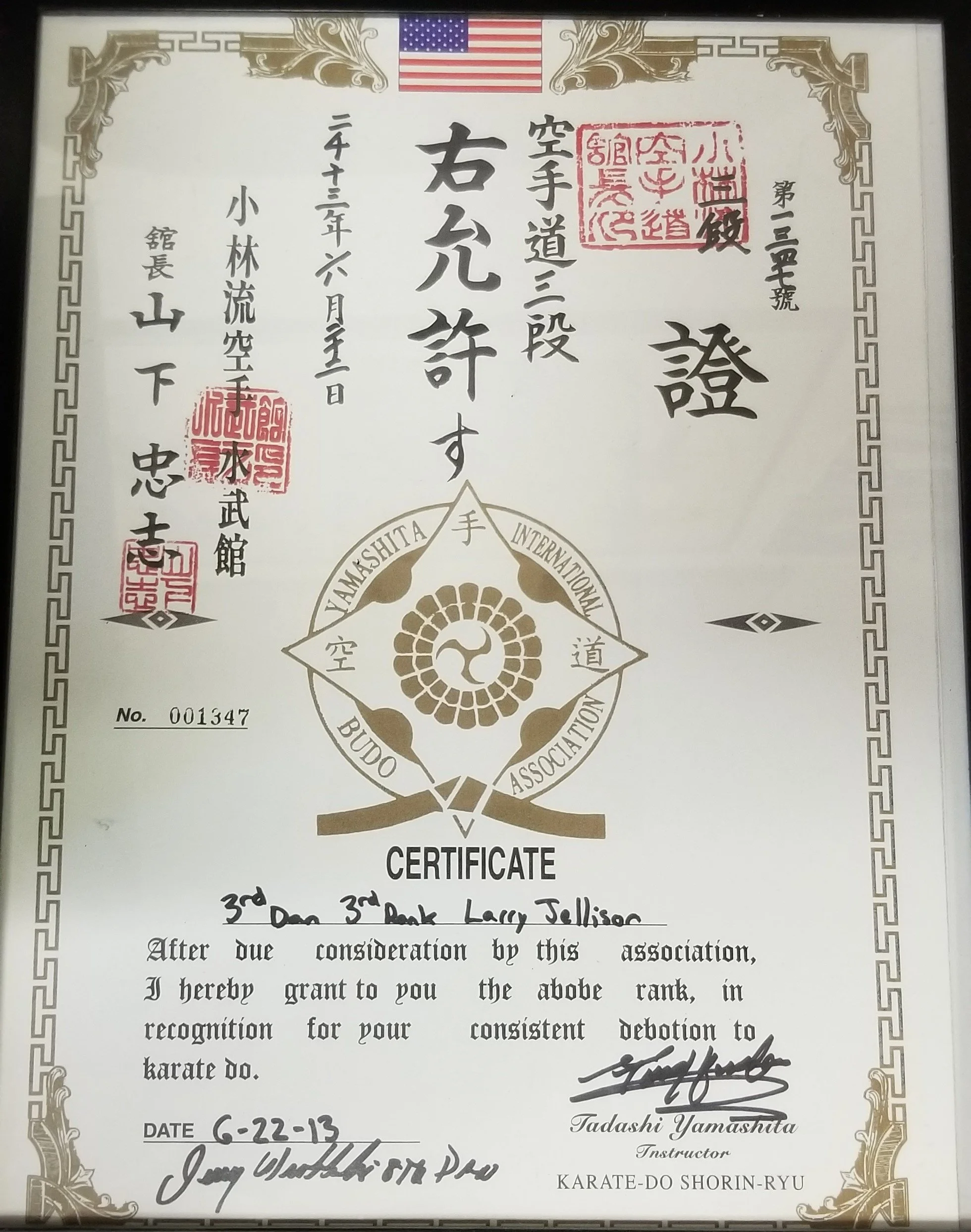 Larry Jellison, 3rd Degree Karate June 22, 2013 **Special Note: Sensei Larry, along with the husband and wife team of Karin and Wayne Thomas, ran Midwest Karate Academy for many years prior to the changeover into Suibukan.