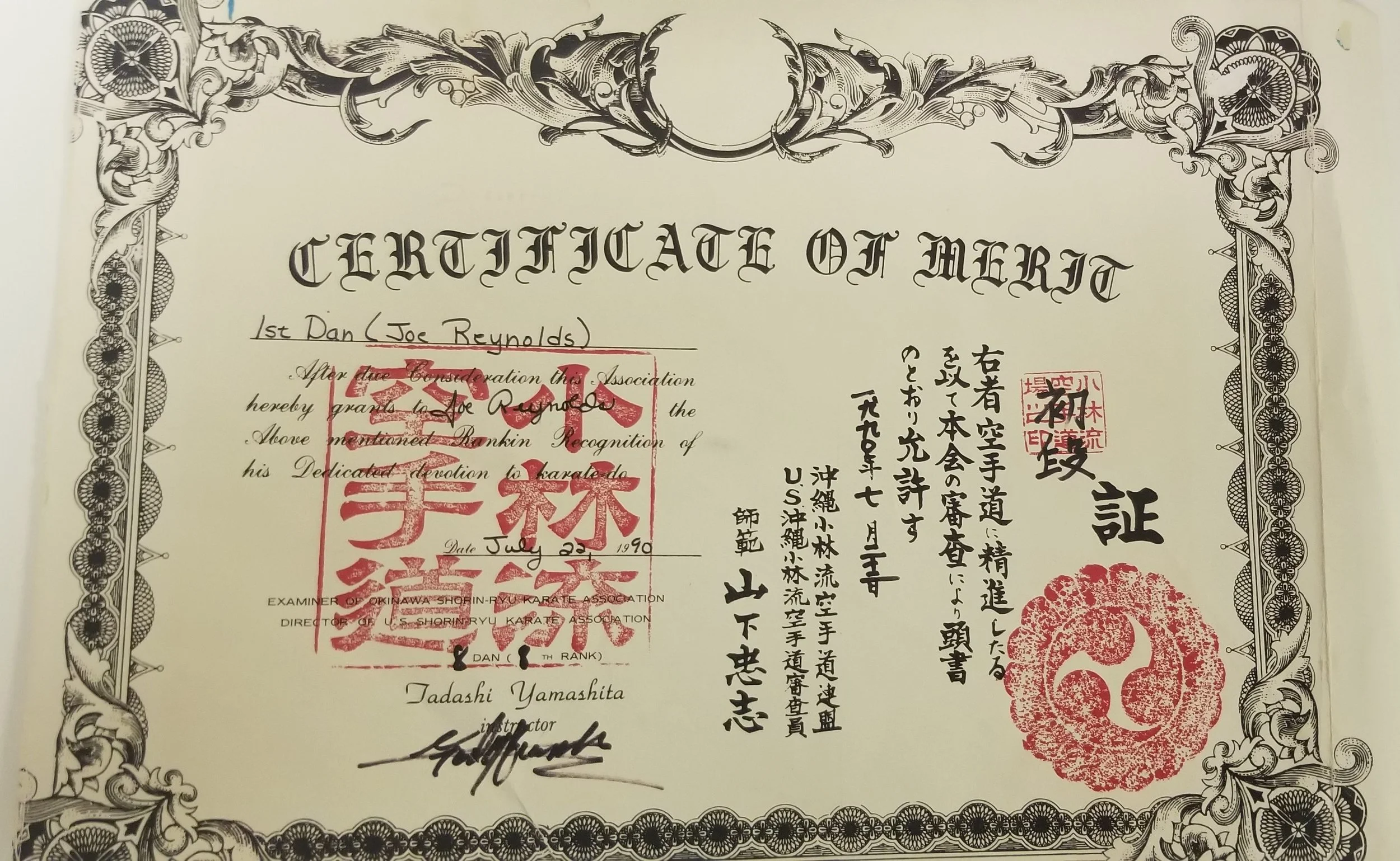 Joe Reynolds, 1st Degree Karate July 22, 1990