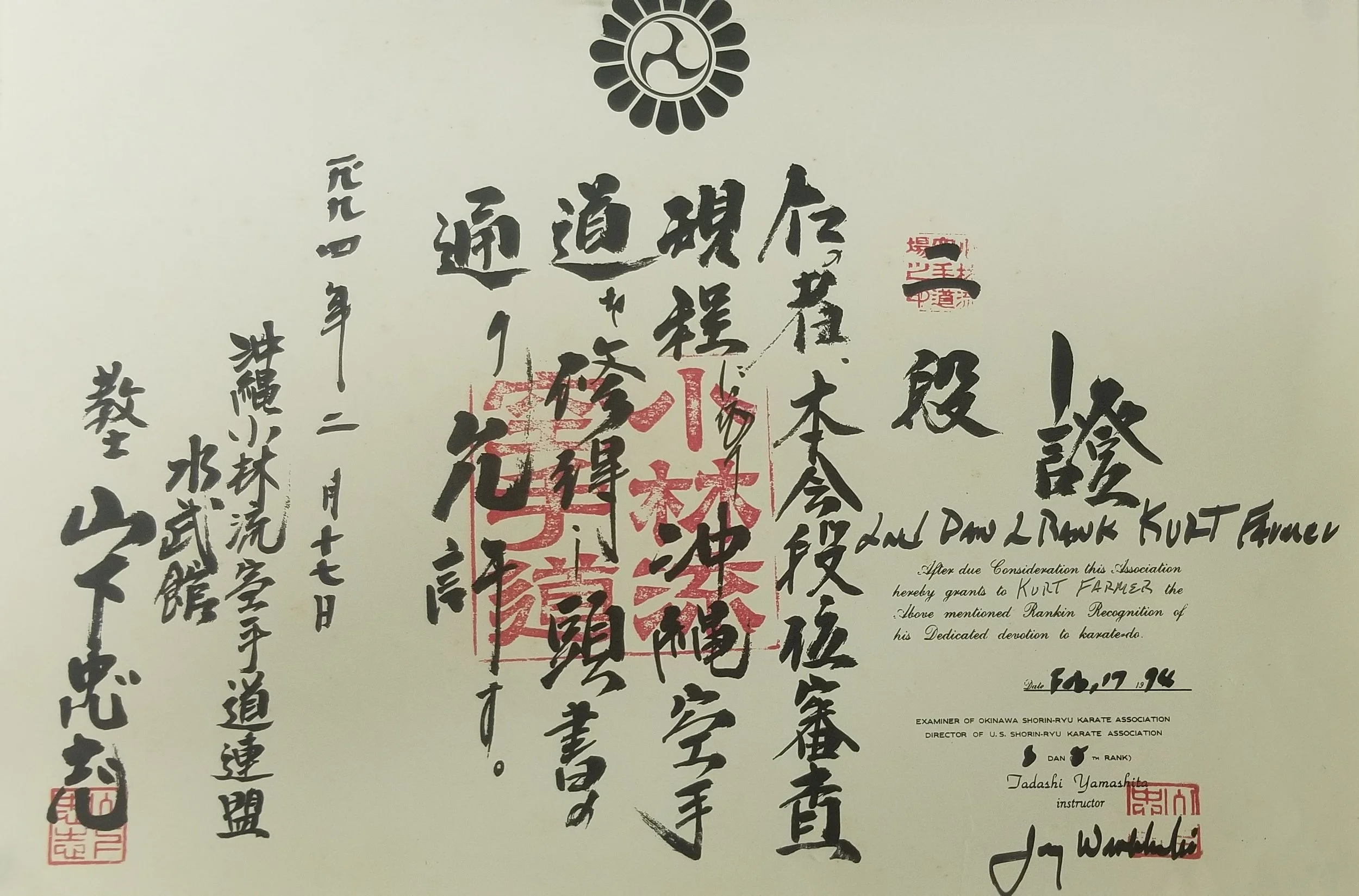 Kurt Farmer, 2nd Degree Karate February 17. 1994