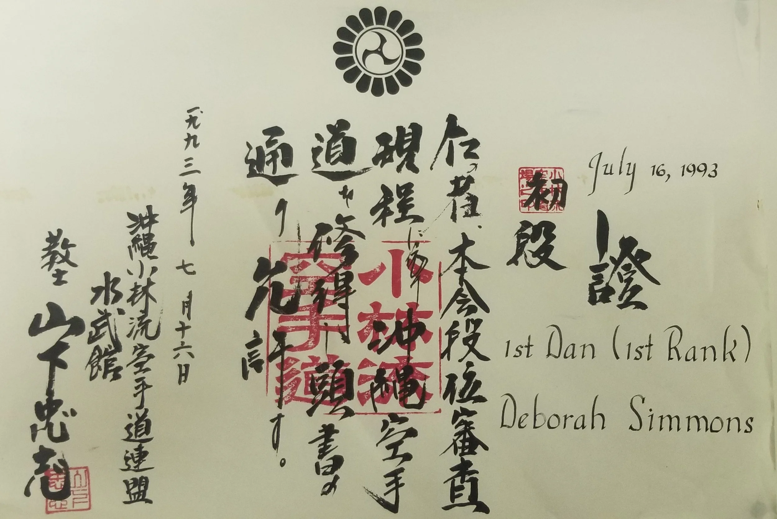 Deborah Simmons, 1st Degree Karate July 16, 1993