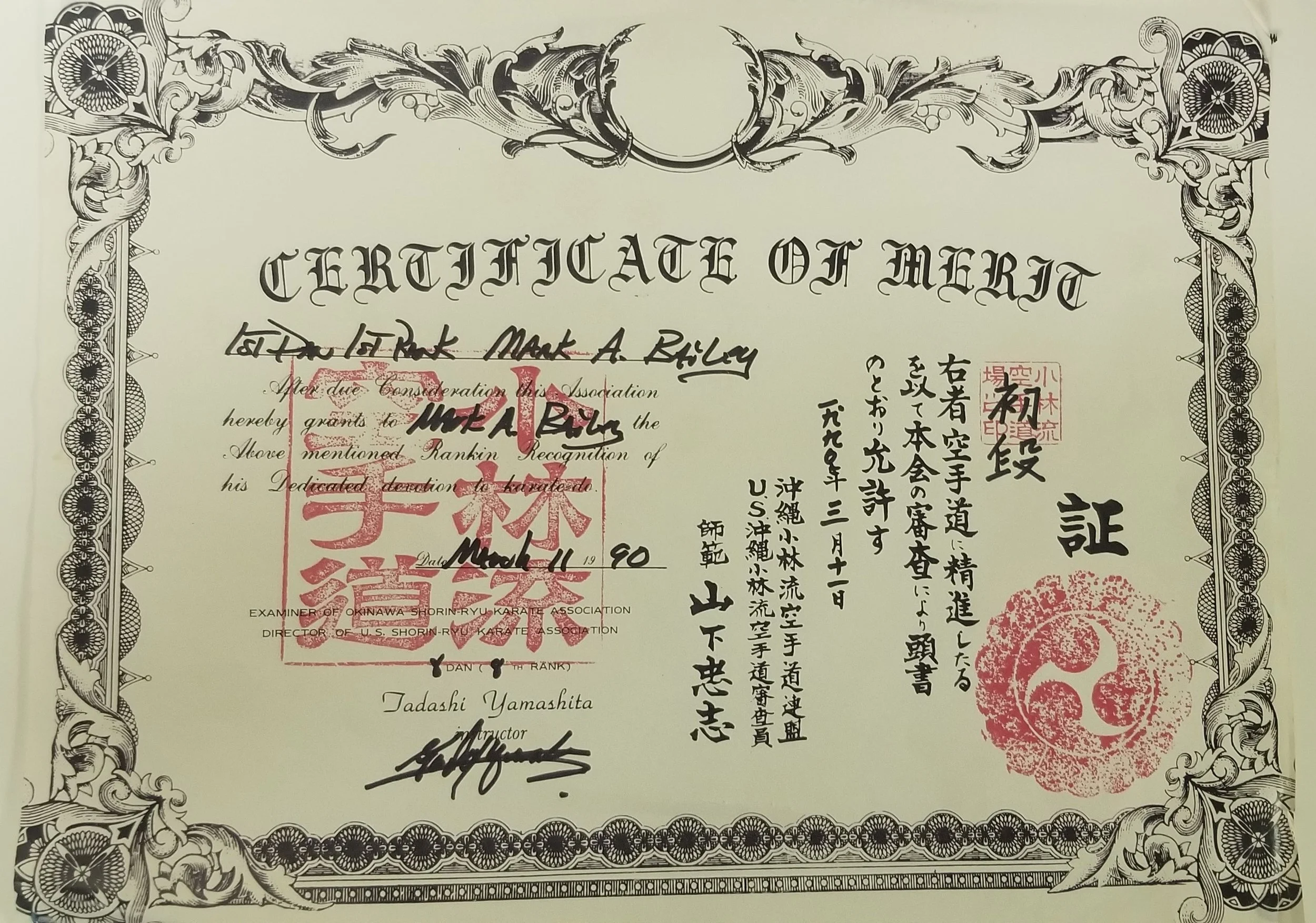 Mark Bailey, 1st Degree Karate March 11, 1990