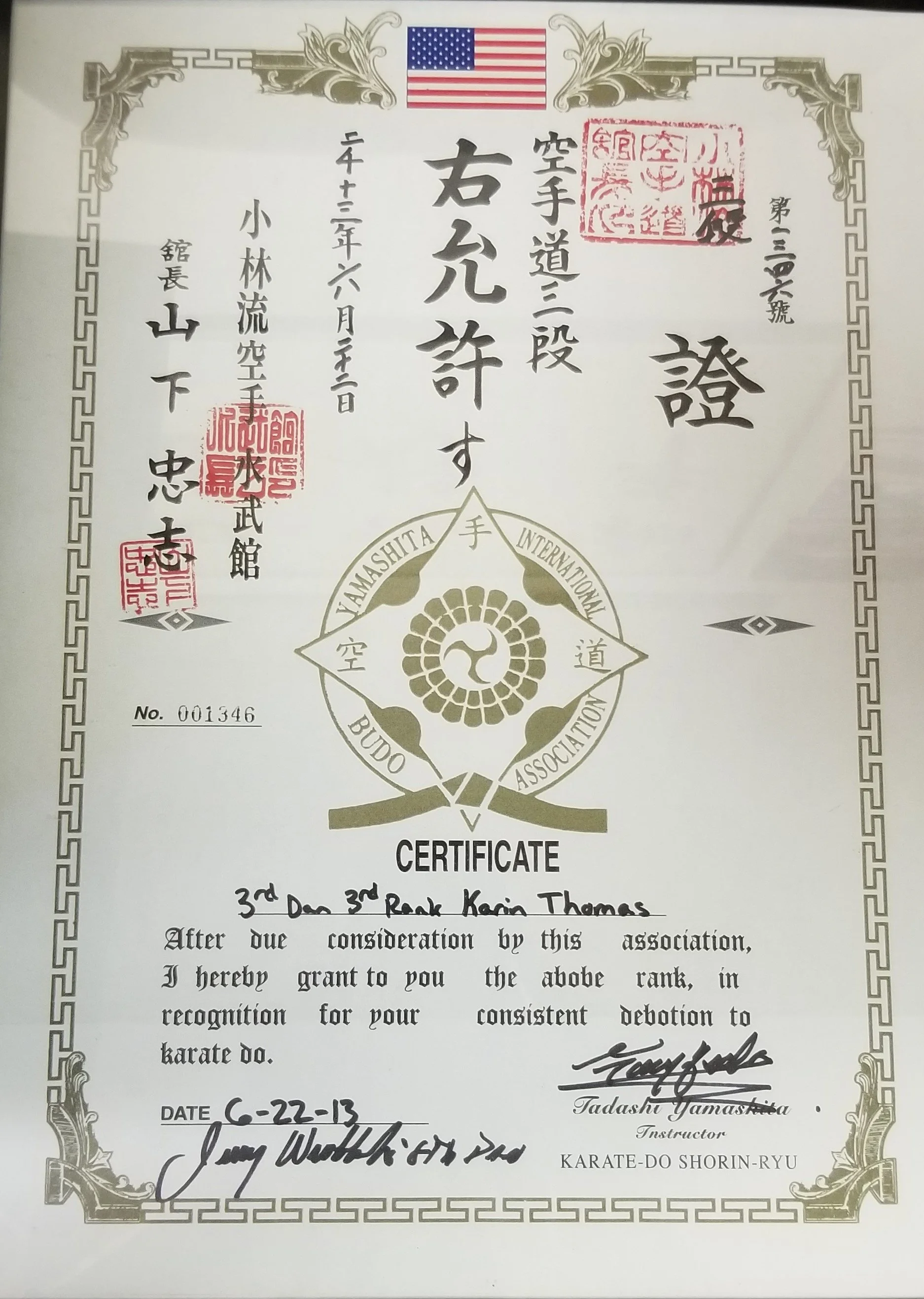 Karin Thomas, 3rd Degree Karate June 22, 2013 **Special Note: Sensei Karin, along with her husband Wayne, and Sensei Larry Jellison, ran Midwest Karate Academy for many years prior to the changeover into Suibukan.
