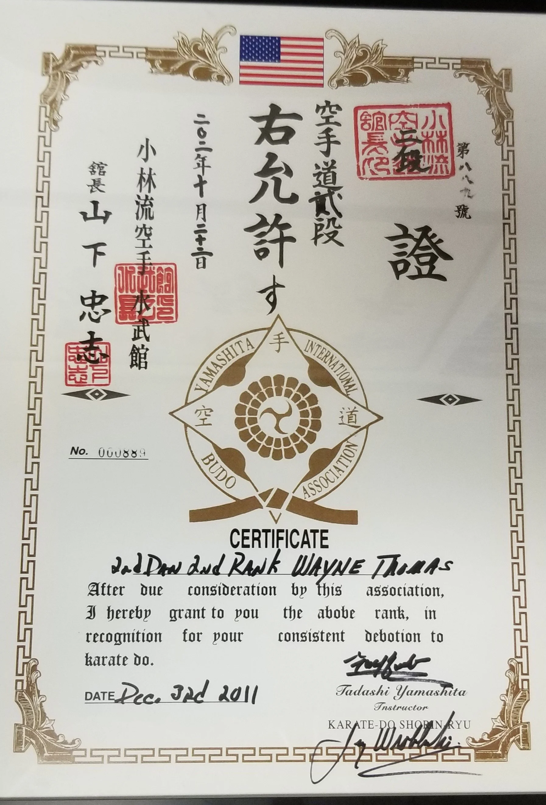 Wayne Thomas, 2nd Degree Karate December 3, 2011 **Special Note: Sensei Wayne, along with his wife Karin, and Sensei Larry Jellison, ran Midwest Karate Academy for many years prior to the changeover into Suibukan.